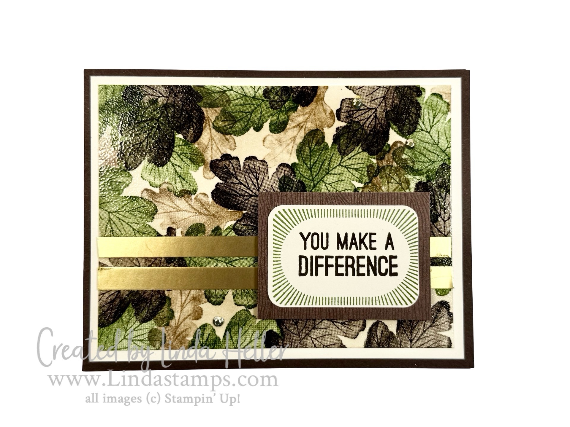 The background was my attempt at faux camoflauge with a leaf stamp set. I think it could use a little tweaking but I do like the clear embossing on the top!